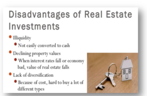 - Real estate assets can be illiquid and unless one is able to sell-off assets, it will not fetch much returns, when needed.